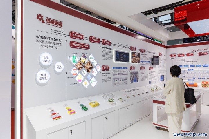 在制造业板块中,展台陈列了以中药、食品及包装等传统行业为代表的案例,通过技术革新,实现全程标准化、全程数智化、全程低碳化,打造绿色新质生产力。